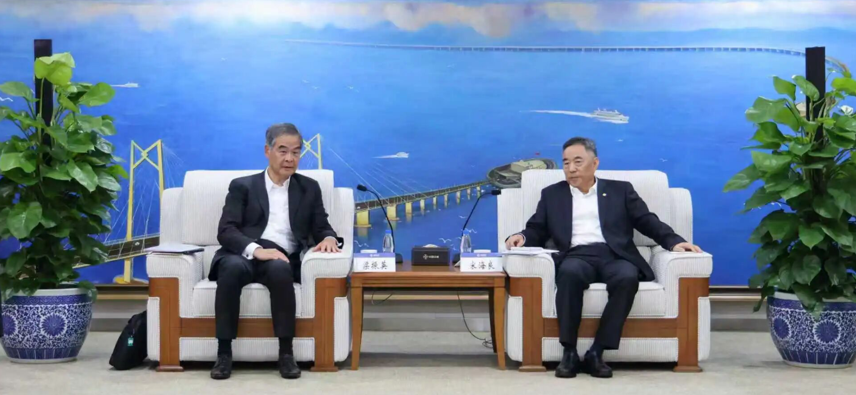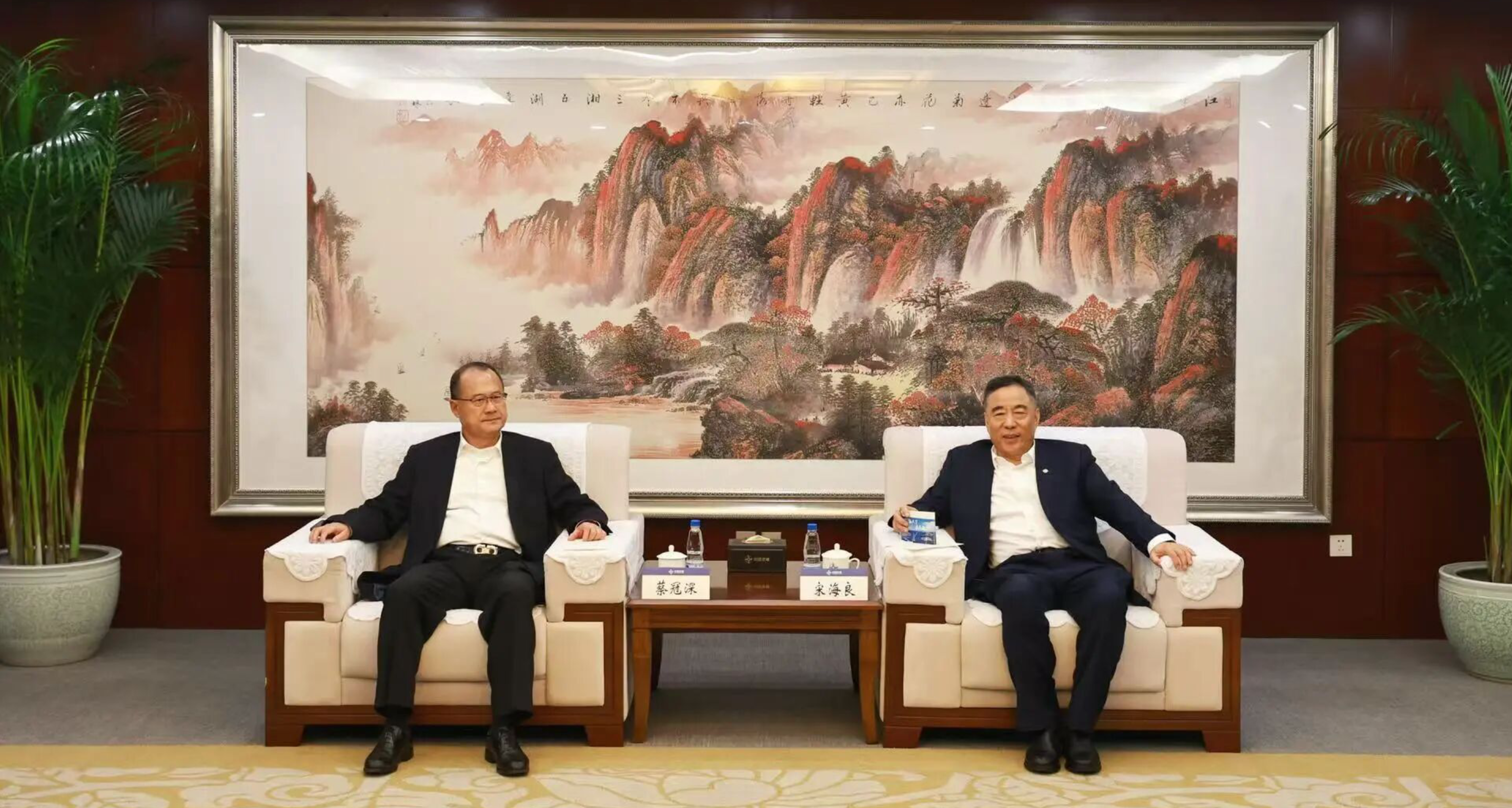 10月24日,51吃瓜 党委书记、董事长宋海良在中交大厦与来访的全国政协常委、香港新华集团主席蔡冠深举行会谈,双方围绕创新合作模式、建立产业联盟、深化战略合作等方面开展深入交流。
