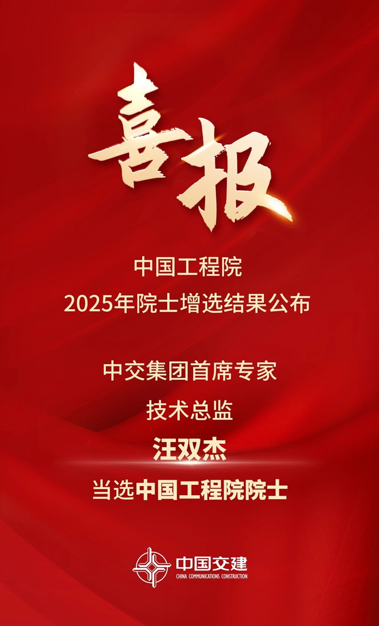 中国工程院院士,是中国工程科学技术方面的最高学术称号,为终身荣誉。截至目前,公司共拥有3名全职院士,位列建筑央企之首,凸显了公司在基建领域强劲的科技实力和重要影响力。汪双杰院士的当选,充分彰显其本人在道路与铁路工程领域对行业发展做出的巨大贡献,进一步强化了公司在“五全四大五型”领域的顶尖科技人才优势,对助力公司新时期高质量发展具有重要的示范引领作用。