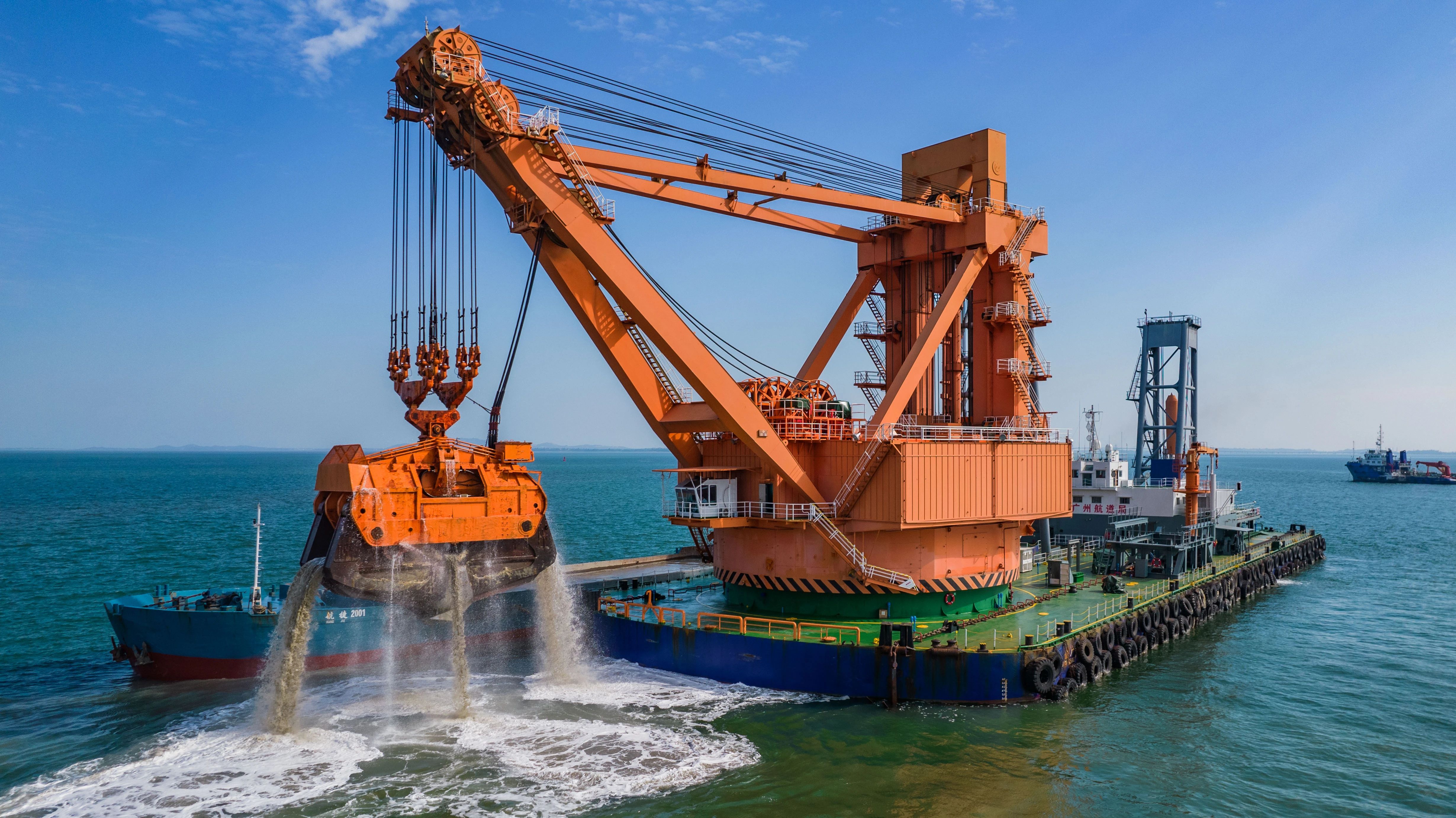 世界最大抓斗式挖泥船,享有“世界第一抓”的美誉。该船船长100米,型宽36米,总吨位达8048吨,配备斗容200立方米的液压抓斗(当前世界最大斗容),以及136立方米液压重斗,最大挖深30米、最大吊重690吨,可直接开挖抗压强度达80兆帕的硬岩,堪称我国疏浚工程领域“挖岩清礁”的独门利器。该船通过技术创新,建起“硬件+工艺+智能+管理”的完整疏浚作业体系,彻底革新了传统疏浚作业范式,为支撑国家重大战略、维护国家安全、引领行业绿色发展提供了关键支撑,发挥着不可替代的核心作用。