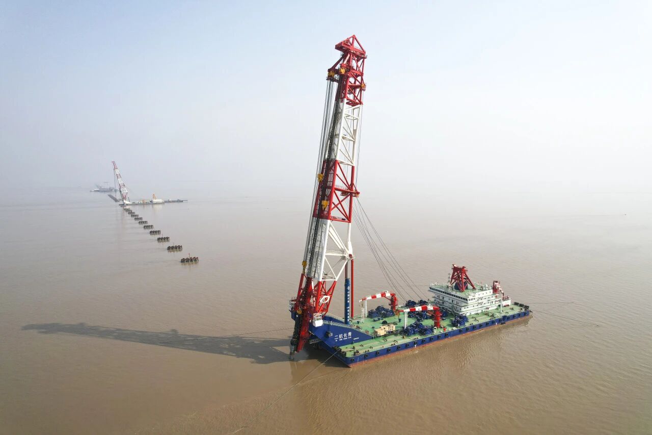 船长120米,型宽40.8米,型深8.4米,配备150米可变高度桩架系统,最大打桩长度达125米+水深,最大桩径7米,最大桩重700吨。该船搭载了自主研发的世界最大打桩船油缸,实现了超大超长油缸的国产化替代。它不仅刷新了世界最大固定臂架打桩船和世界最大船用变幅油缸两项纪录,更展现了中国在高端装备制造领域的强大实力和创新能力,为全球海洋工程装备的智能化与绿色化发展树立了新标杆。