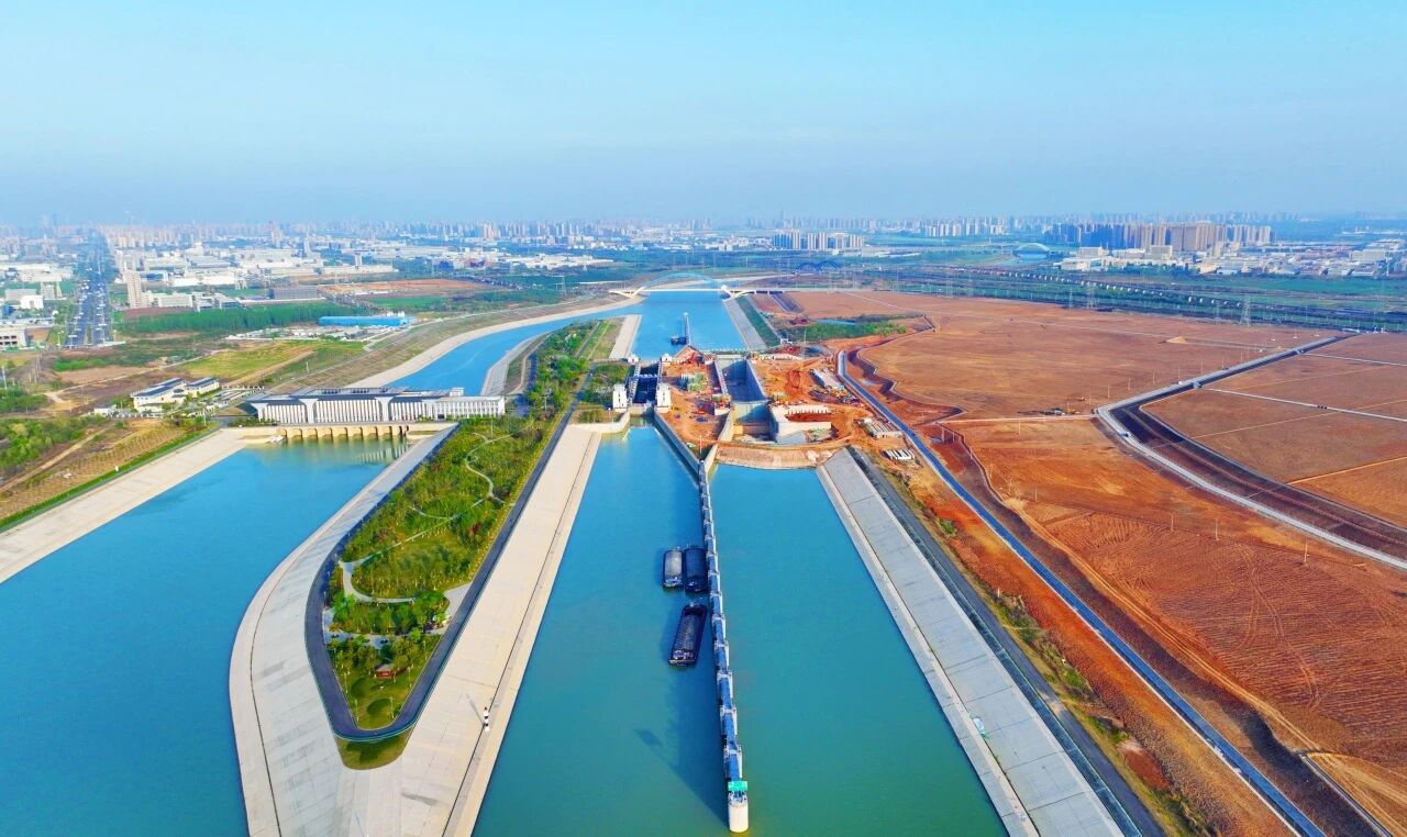 由二航局、四航局参建的引江济淮工程,是国内在建规模最大的跨流域引调水工程,全线输水线路总长723公里。引江济淮蜀山枢纽由引水泵站、一线船闸、复线船闸、泄水闸、渠道及两岸防洪堤等建筑物组成。工程建成后将为皖北豫南地区提供充沛水源,有效缓解区域水资源短缺现状,改善安徽巢湖及淮河流域生态环境,惠及人口超过5000万。