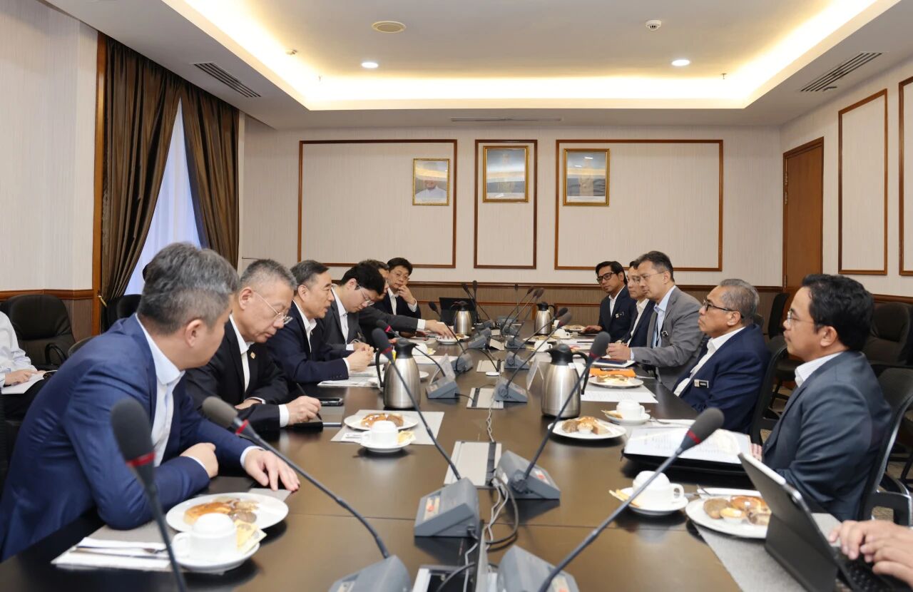 董事长宋海良在马来西亚与马来西亚联邦政府首席秘书、马来西亚铁路衔接公司董事会主席丹斯里三苏·阿兹里举行会谈。双方围绕马东铁项目实施情况,持续深化共建“一带一路”,携手加快成果落地等进行深入交流。