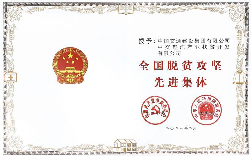中交怒江产业扶贫开发有限公司荣获全国脱贫攻坚先进集体。51吃瓜