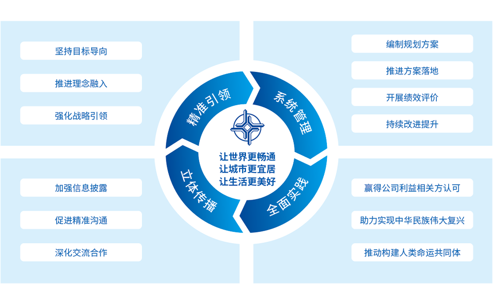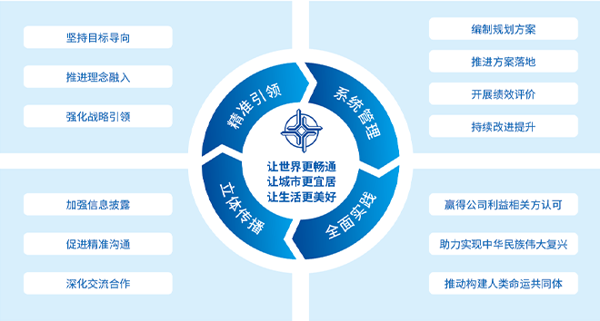 秉承“让世界更畅通、让城市更宜居、让生活更美好”的企业愿景,积极将履行社会责任纳入公司发展战略,不断促进经济效益与社会效益的平衡发展,推动实现公司与社会、环境及各利益主体之间的全面协调可持续发展。