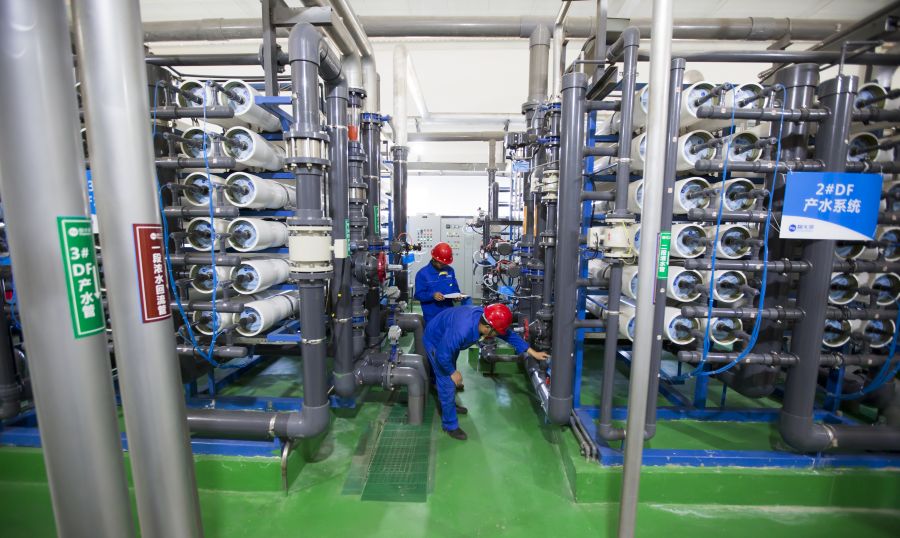 为将污水转化为地表水Ⅲ类及以上标准优质水资源,碧水源创新研发出双膜新水源工艺(MBR-DF)。与其他国家在传统的污水处理厂后增加超滤-反渗透技术相比,MBR-DF系统运行压力可降低60%~70%,能耗下降60%~65%,出水水质达到地表Ⅲ类水以上,已成为北京、天津等对再生水有高标准要求的地区、洱海流域等水环境敏感地区、特殊行业需求等水质稳定达标的支撑性技术。