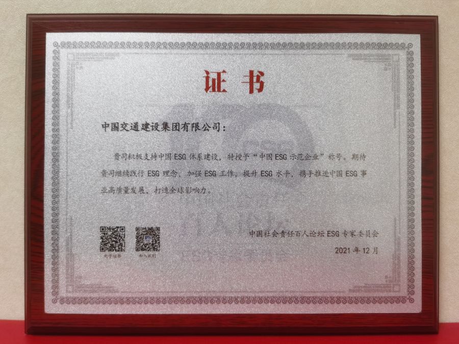 二是搭建交流平台。联合主办ESG中国论坛2021夏季峰会,阐述自身对ESG理念的认知与实践,积极为构建中国ESG体系、推动ESG发展贡献中交智慧和中交力量。参与起草《企业ESG披露指南》团体标准,并于2022年6月1日正式发布,填补了中国企业ESG披露标准领域的空白,有利于增强企业信息披露的精准性、有效性,助力企业在新发展格局下,践行新发展理念,实现高质量可持续发展。