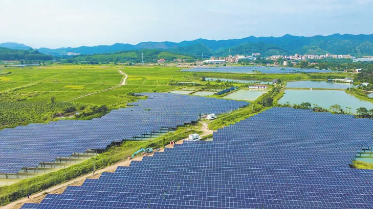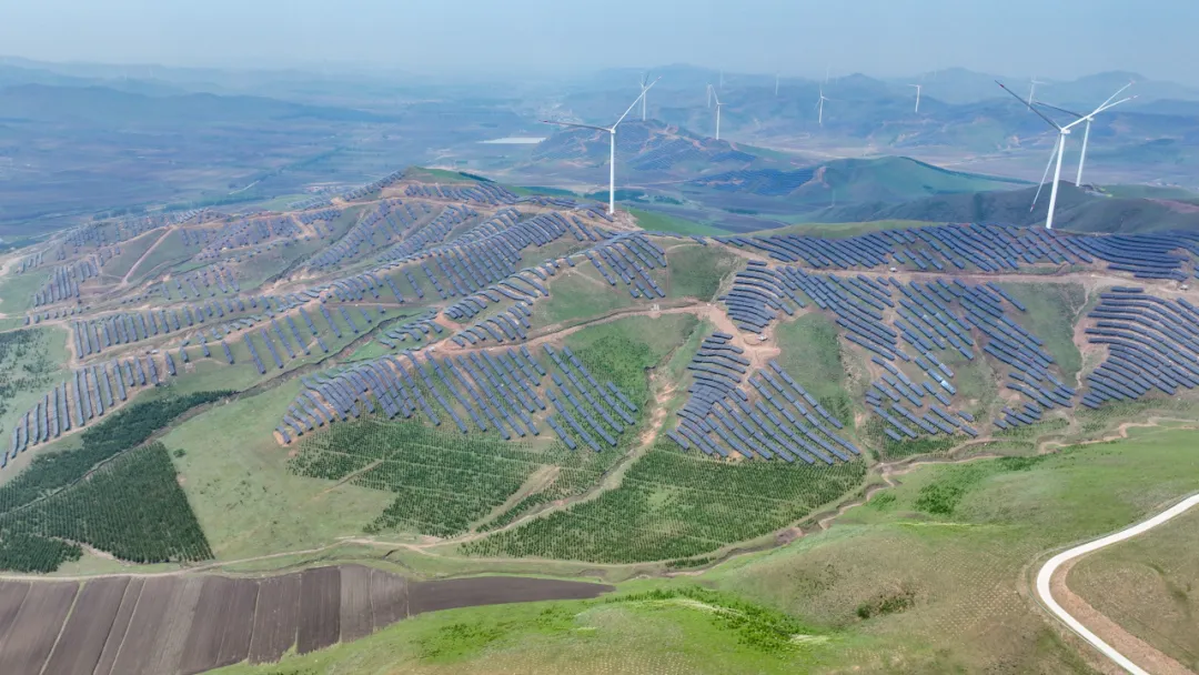 河北承德市丰宁县丰晟100兆瓦农光互补项目在广袤草原上勾勒出一幅生态保护的壮美画卷。22万块光伏组件在山脊间铺展成“蓝色海洋”。这座装机规模达99.84兆瓦的“阳光银行”正以年均21万兆瓦时的清洁电力产能为“双碳” 注入澎湃动能。