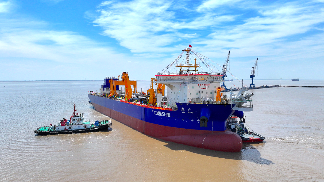 “浚广”是国内首创首造世界领先、亚洲第一的超大型耙吸式挖泥船,具有“智慧、高效、全能、环保”四大特性,和“强破土、大挖深、远运距、长吹距”顶级性能。最大泥舱容超过35000立方米,适用于港航疏浚、深远海取砂、吹填造陆和管沟开挖回填等海工作业场景。