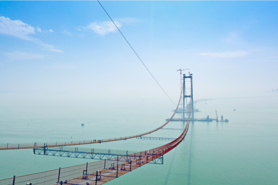 在大桥施工现场,二航局深中通道项目常务副总工、智能建造党小组组长曾炜正站在90层楼高的猫道上,这是他每天的必经之路。