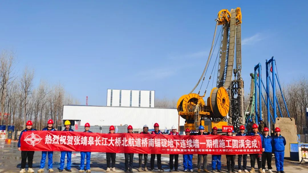 中交路建承建的江苏张靖皋长江大桥北航道桥南锚碇采用深层地基加固的复合地基圆形地连墙基础,大面积深层地基加固水平封底方案为桥梁工程首创。春节期间,项目150余名管理人员和作业工人坚守岗位就地过年,全力以赴推进工程建设,共完成6个一期槽段和2个二期槽段的施工,累计浇筑混凝土4170立方米,占地连墙总工程量的17.5%,将原计划时间节点提前了20天,为后续深层地基加固和基坑开挖奠定了良好的基础。