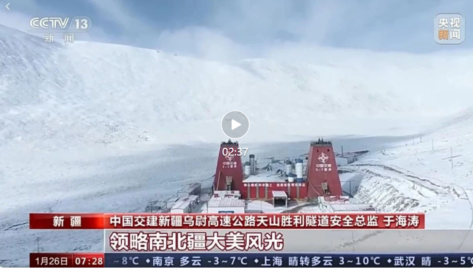 1月26日,央视新闻频道《朝闻天下》栏目“大国工程进行时”特别节目来到海拔2800多米的天山深处,聚焦公司承建的新疆天山胜利隧道,讲述建设者们用汗水和坚守打通南北疆、迎来兔年火热新春的故事。