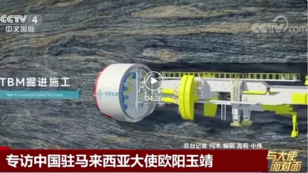 1月26日,央视中文国际频道《今日环球》栏目专访中国驻马来西亚大使欧阳玉靖,报道大使在春节期间考察慰问公司承建的马东铁项目,关注云顶隧道建设进度,同坚守在一线的中交建设者们共贺新春。