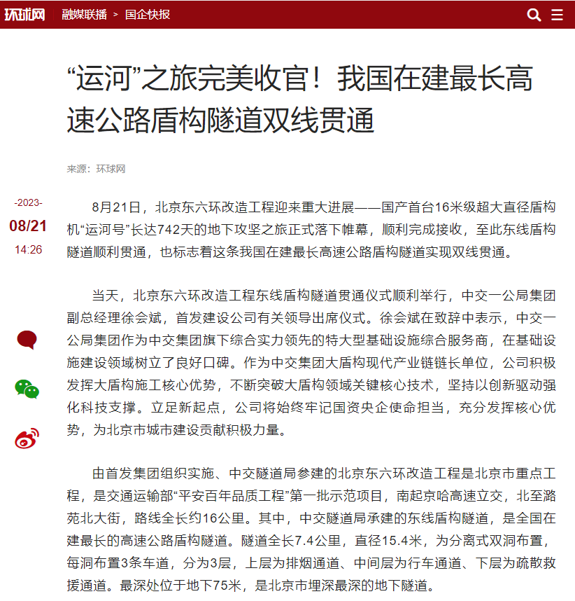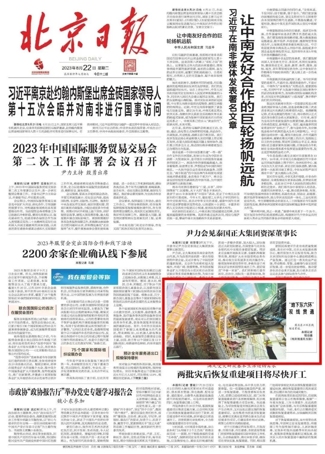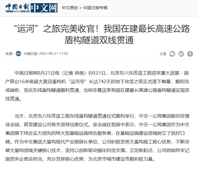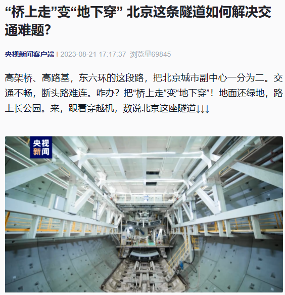 北京日报头版图片新闻报道北京东六环改造工程双线贯通。北京日报多个媒体平台同时报道北京东六环改造工程双线贯通,累计浏览量超20万次。