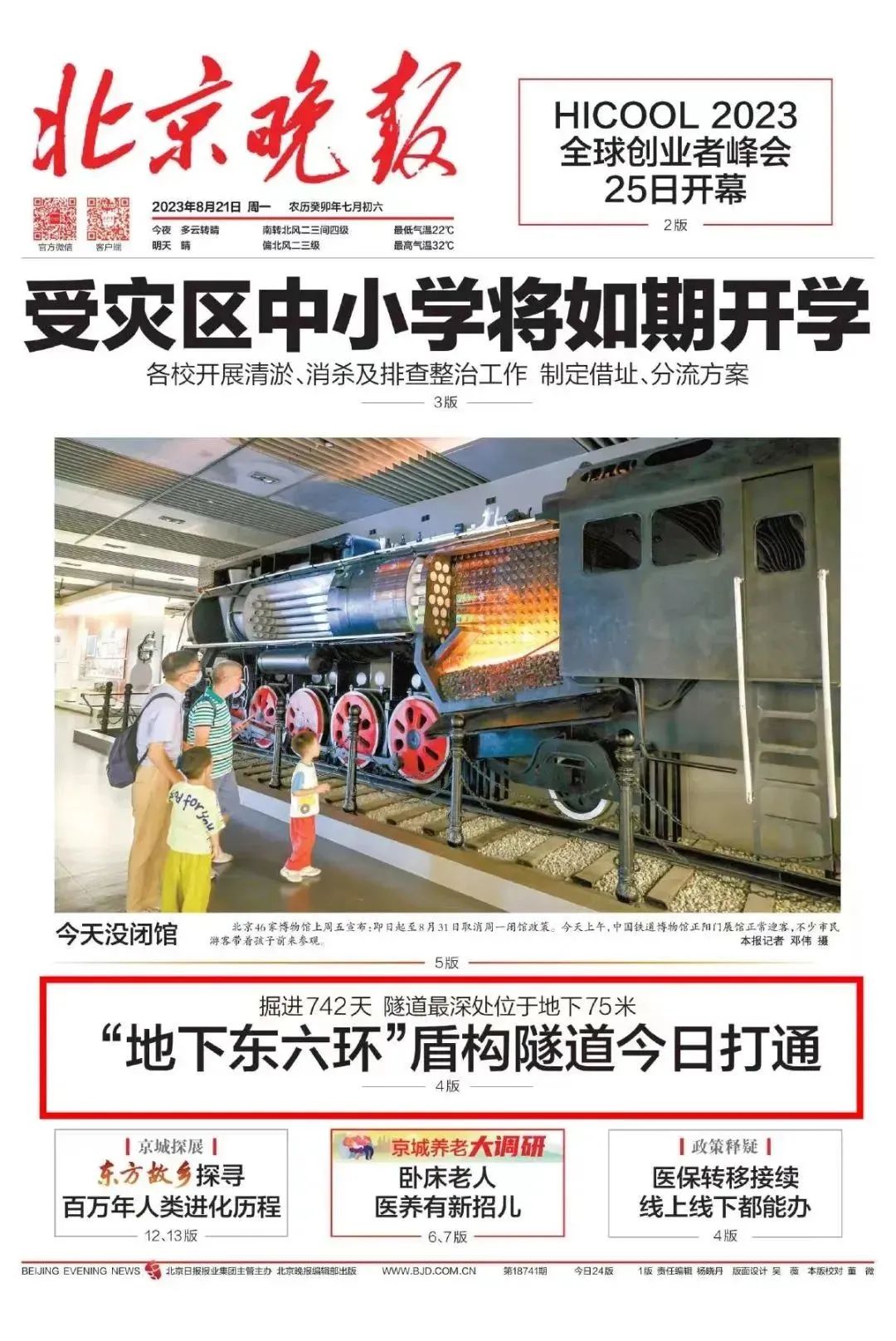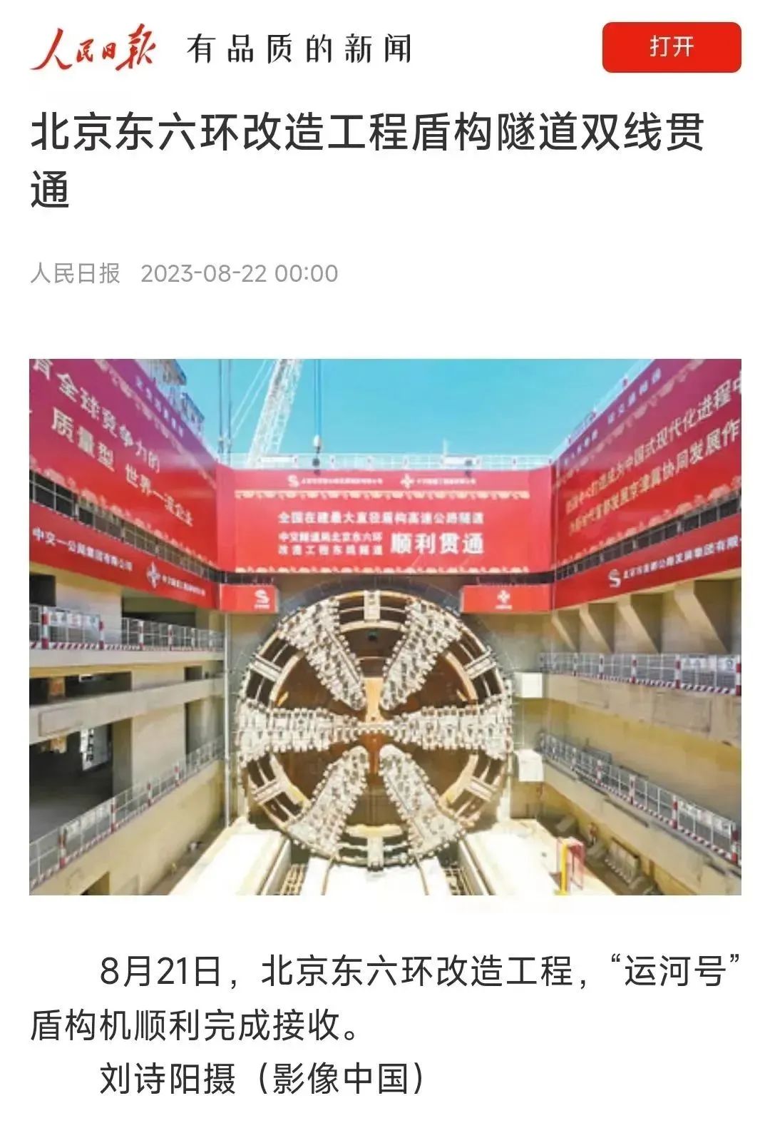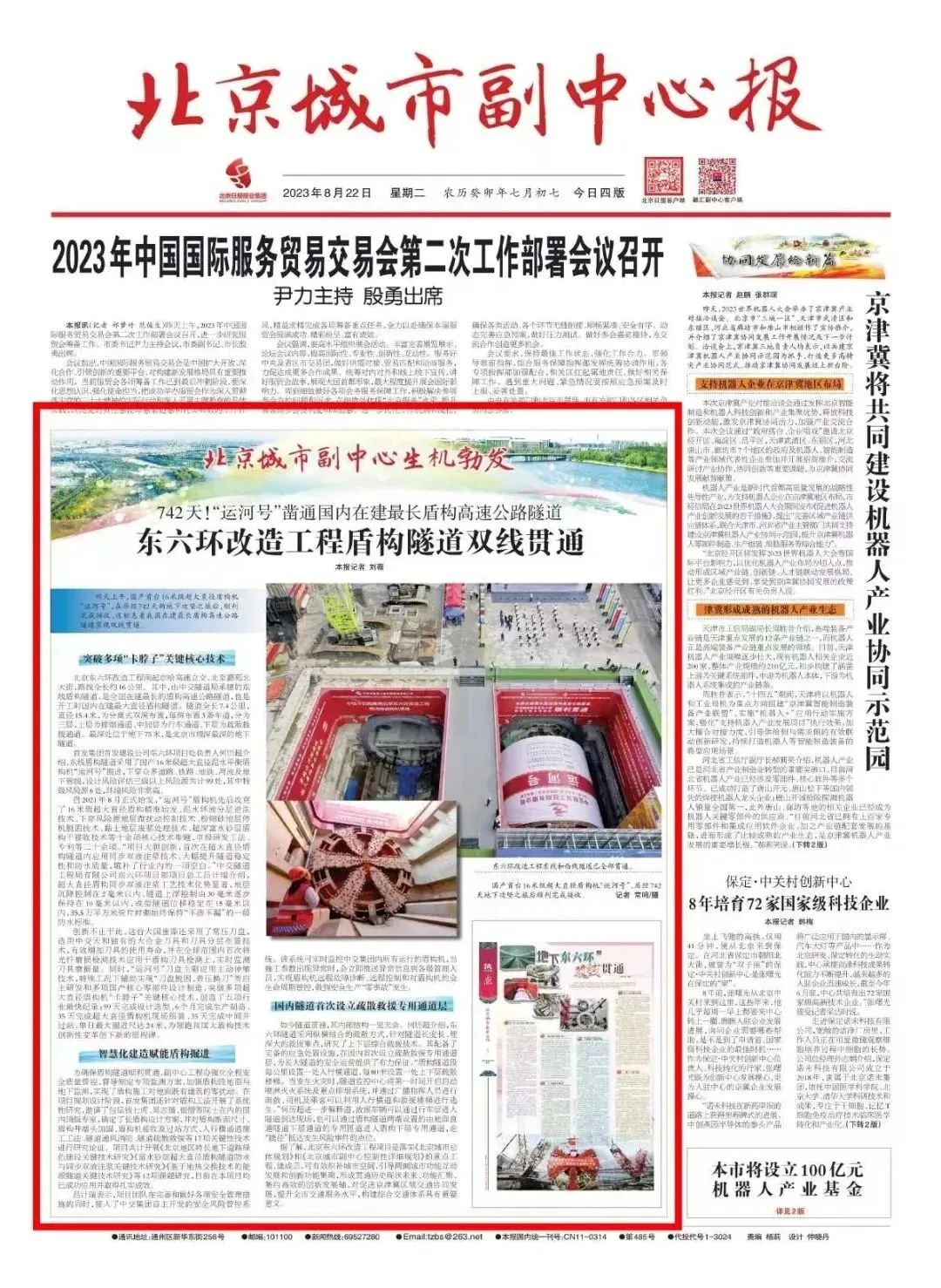 北京日报头版图片新闻报道北京东六环改造工程双线贯通。北京日报多个媒体平台同时报道北京东六环改造工程双线贯通,累计浏览量超20万次。