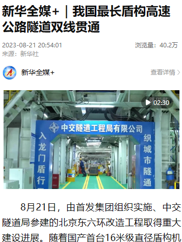 新华社多个媒体平台报道北京东六环改造工程双线贯通,累计浏览量超70万次。