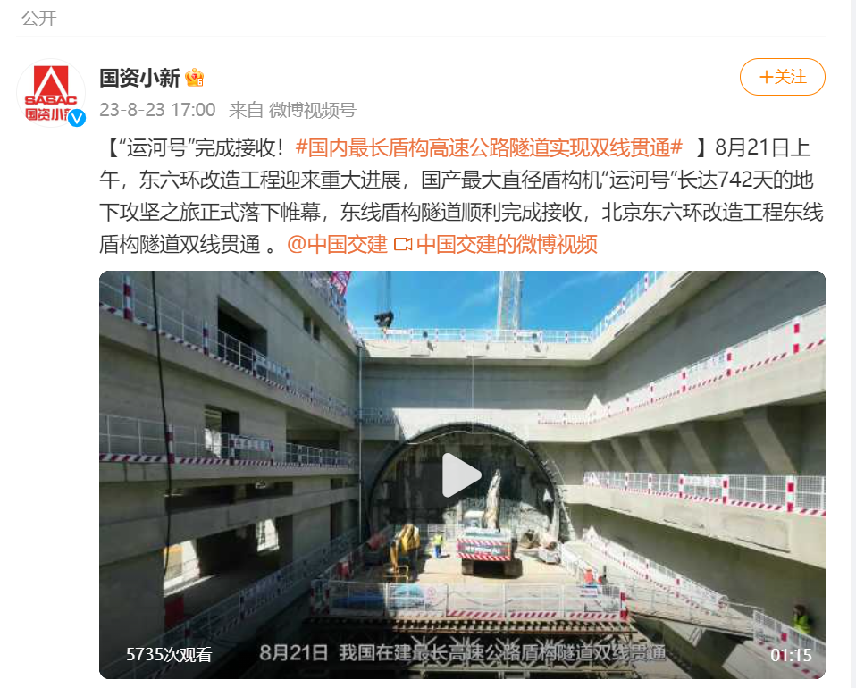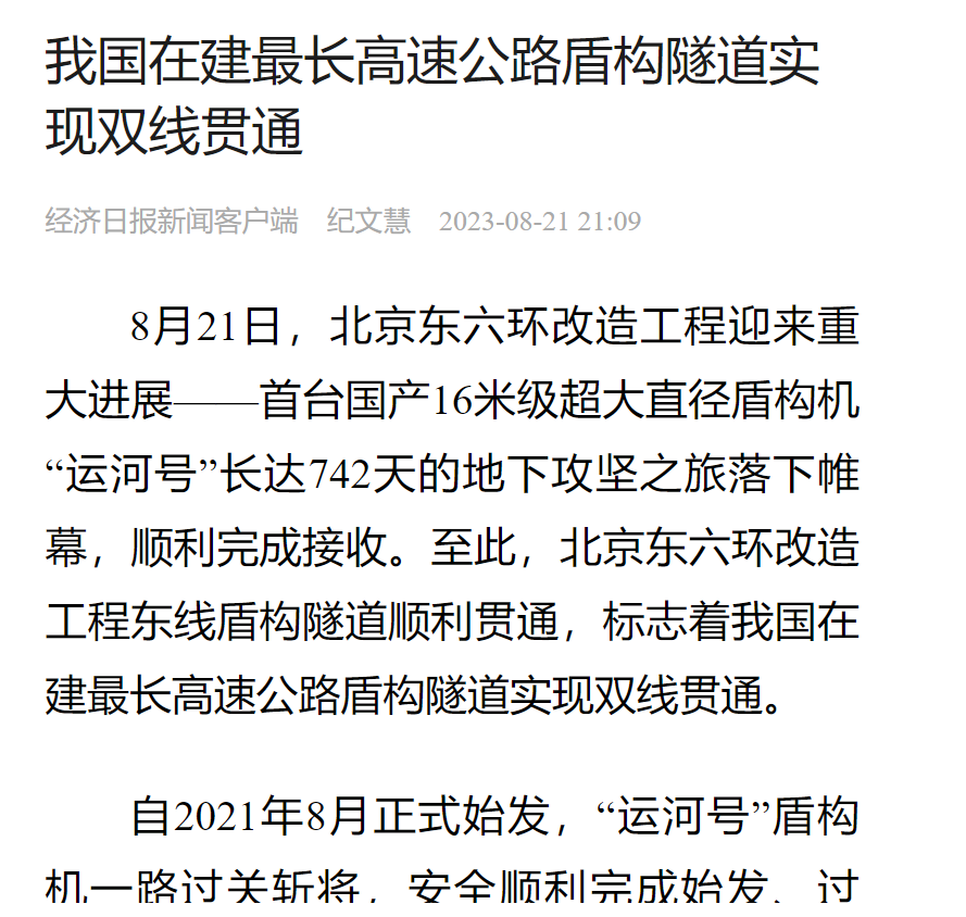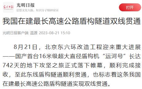 对我国在建最长盾构高速公路隧道顺利贯通