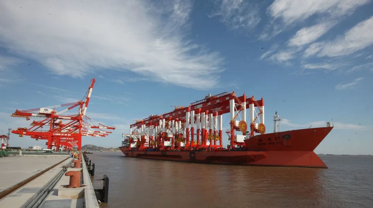 投产五年来,洋山四期年吞吐量突破570万标准箱,同比增长35.7%,创造岸桥平均台时量58.28自然箱、岸桥单机作业效率每小时63.88自然箱的两项新纪录。